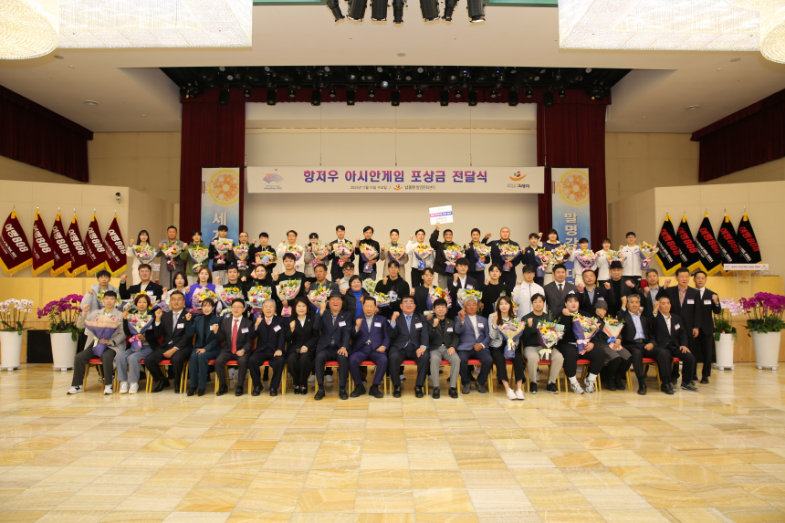 À̹ø Á¦19ȸ Ç×Àú¿ì ¾Æ½Ã¾È°ÔÀÓ¿¡¼ Ȱ¾àÇÑ ±¹°¡´ëÇ¥ ¼±¼ö´ÜÀ» ÃÊûÇÏ¿© Æ÷»ó±ÝÀ» Àü´ÞÇÏ¿´´Ù.